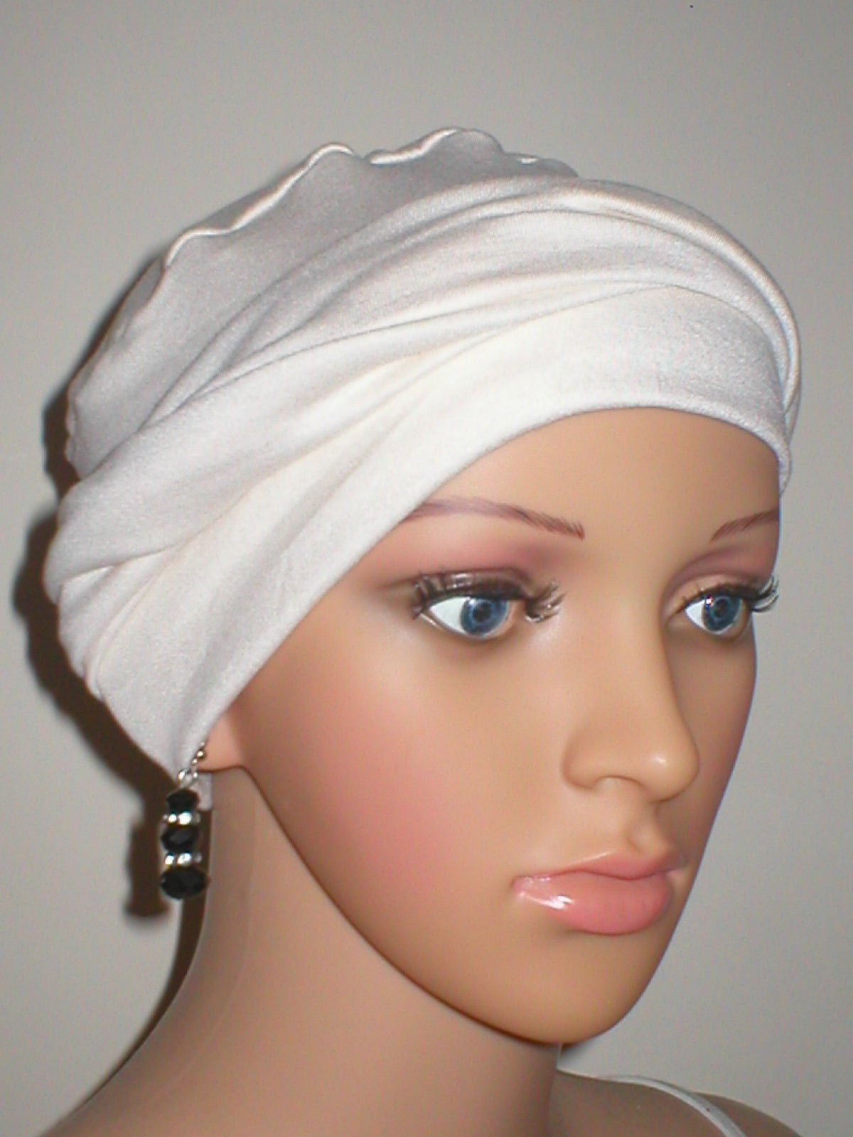 Soft breathable comfortable chemo hat and removable twist headband - Full coverage chemo headwear for cancer hairloss or Alopecia - MIlly cream