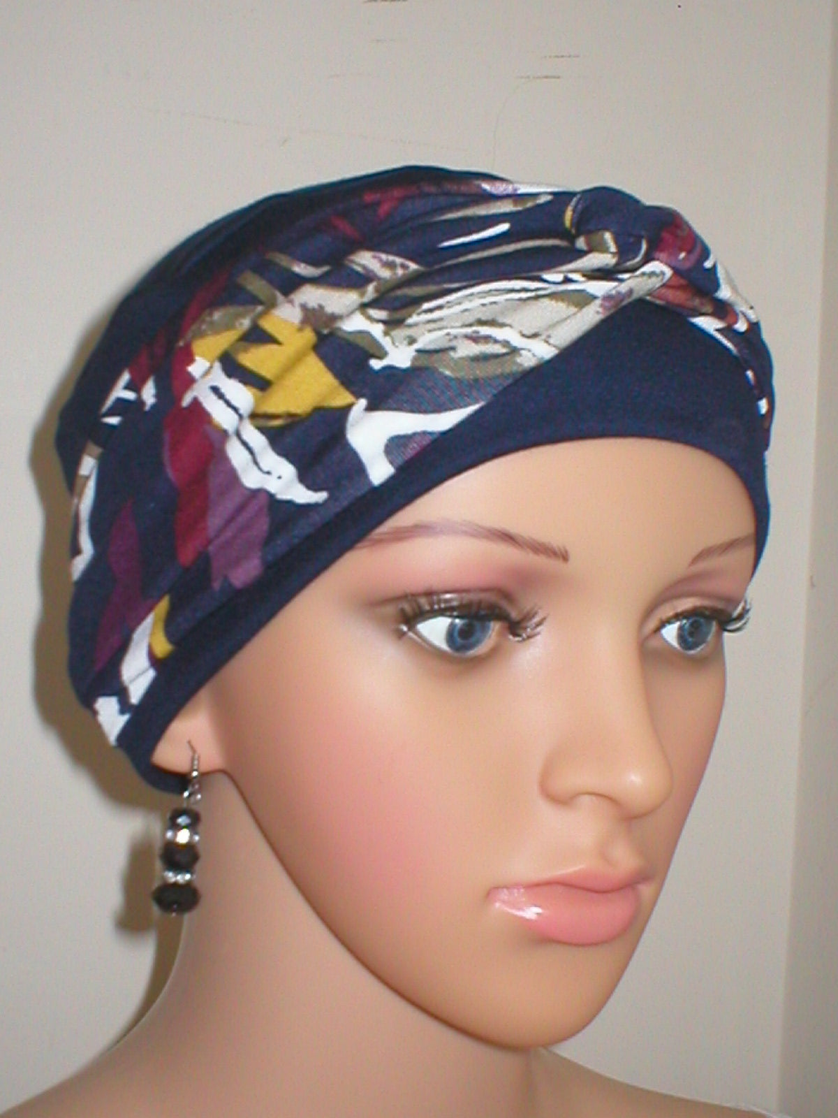 Soft breathable comfortable chemo hat and removable twist headband - Full coverage for cancer hairloss/Alopecia - Navy lily
